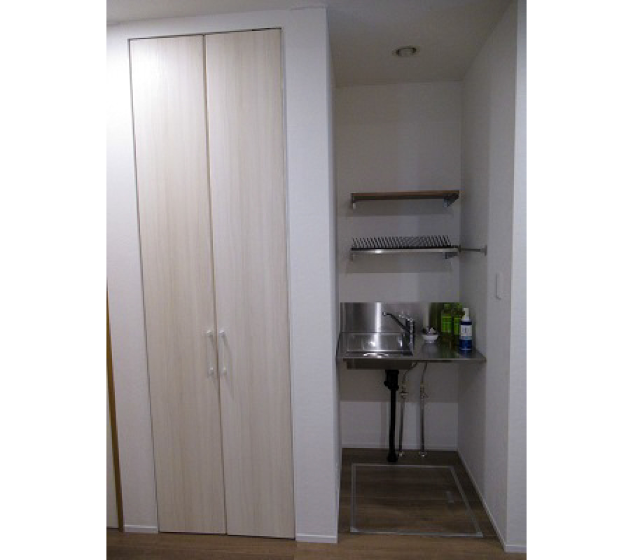 キッチン:サンワカンパニー ミニモラスW750/建具間仕切り:YKK famitto/床暖房新設、他