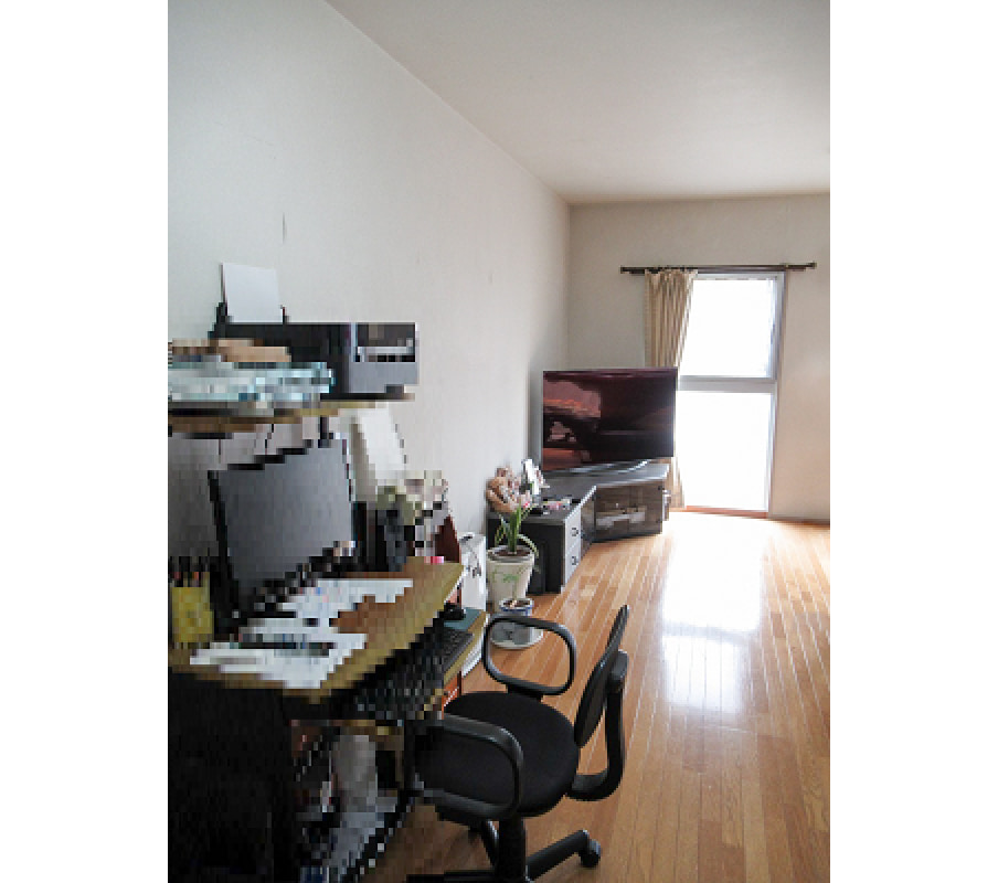 対面タイプをご希望でしたので、L型のキッチンを配置し、和室を洋室に替え1室にしました。