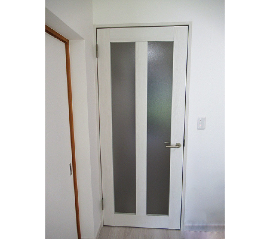 ディズニーがお好きという事でしたので、ミッキーの扉をご提案しLDK内は白をベースにして、廊下側はナチュラルの扉を新設しました。とても可愛い仕上がりになっています。